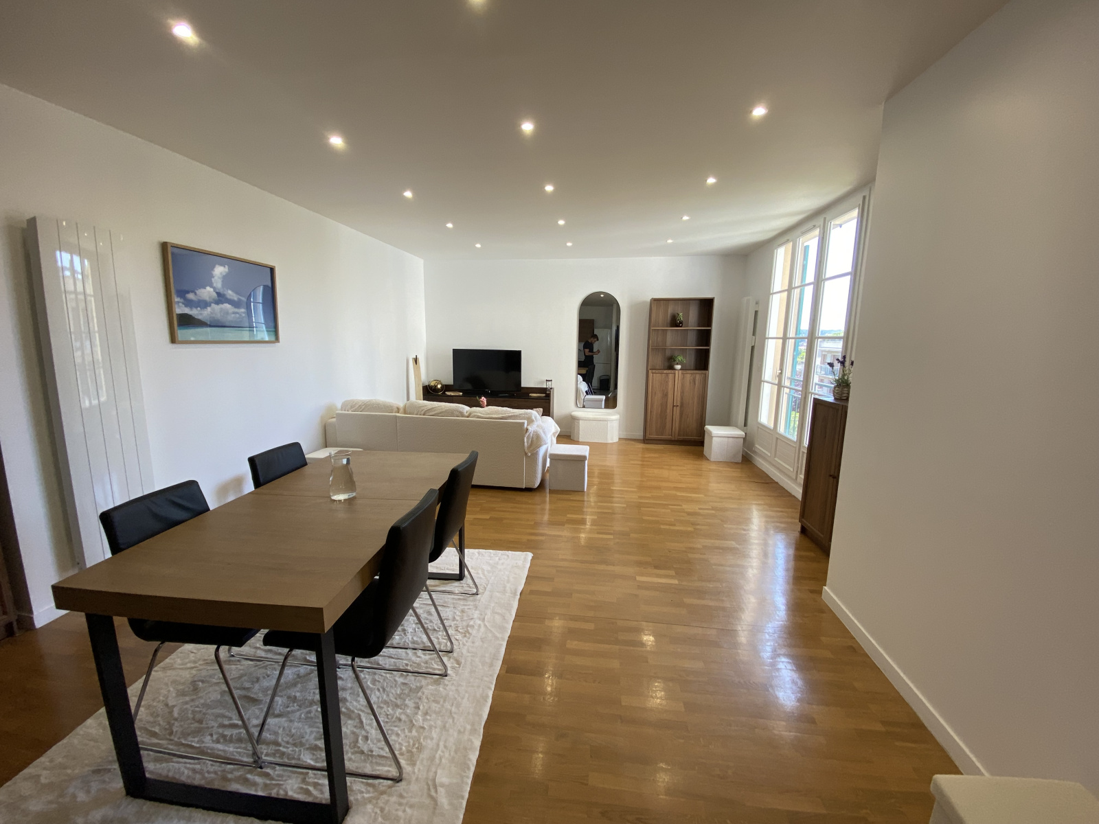 Centre ville, appartement meublé 61 m² surface. Refait à neuf dans petite copropriété très calme au 1er étage proposant : entrée, wc séparés, salle d'eau, cuisine aménagée et équipée ouverte sur salon, chambre avec grand placard/dressing, une cave.