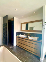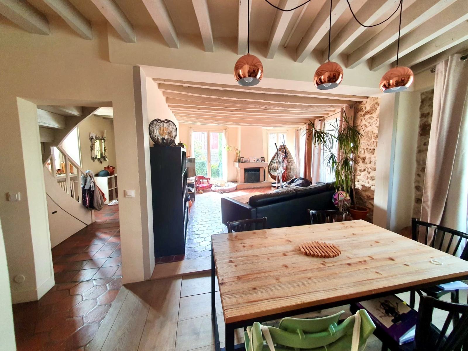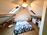 Proche écoles et transports (bus). Elle est composée au rez-de-chaussée : entrée avec wc, double séjour avec cheminée, cuisine totalement aménagée et équipée avec cellier et cave voutée pouvant représenter un espace de vie. Au 1er étage : 2 chambres avec une salle de bains (baignoire, douche, wc) et au dernier étage sous combles, un bel espace parental.
