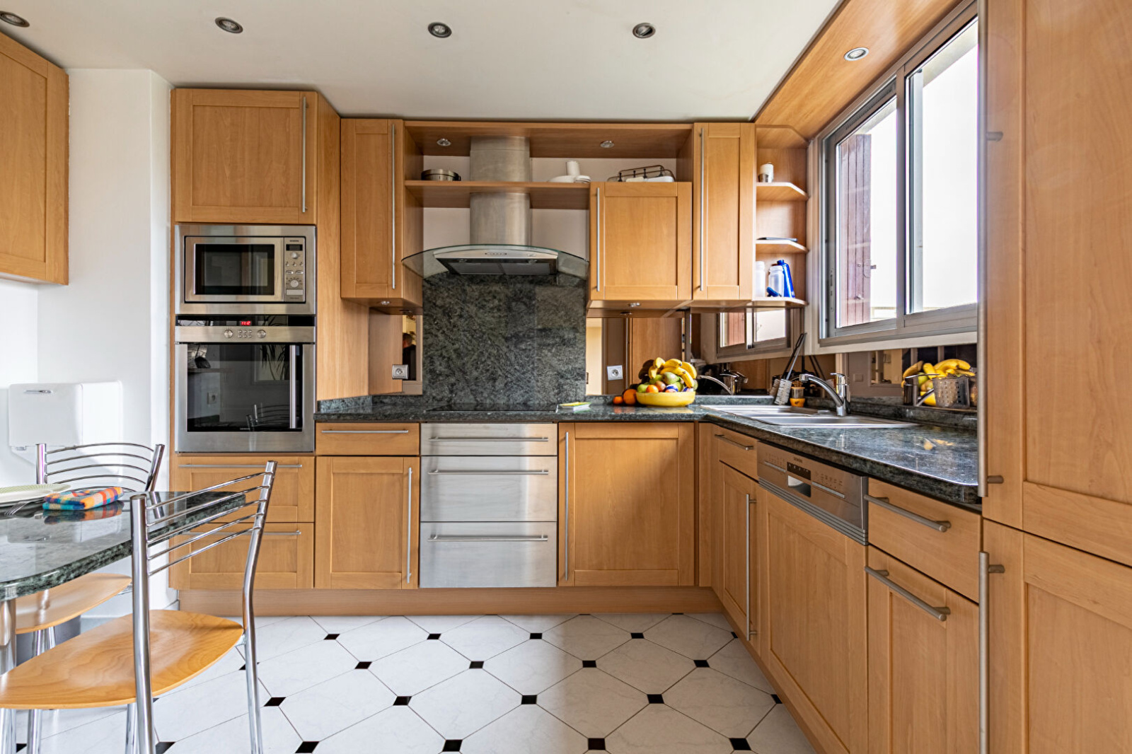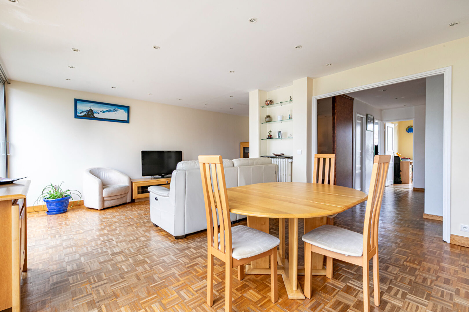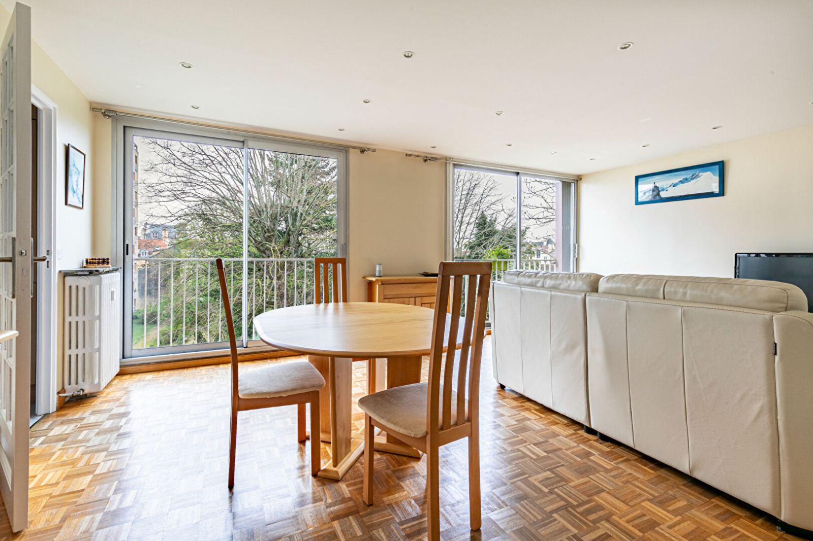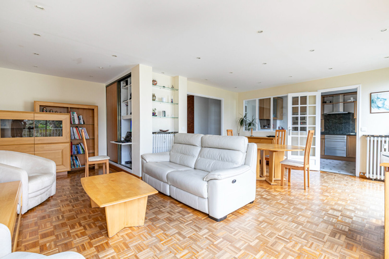 Opportunité rare sur le marché ! En plein coeur du centre ville de Saint-Germain-en-Laye, dans une résidence sécurisée avec gardien, parc et au calme absolu, bel appartement familial de 91m². En très bon état, il se compose d'une entrée avec rangements, un double séjour avec vue verdoyante, une cuisine séparée et équipée (possibilité de l'ouvrir sur le séjour), trois chambres avec placards dont une avec sa propre salle d'eau, une seconde salle d'eau, des WC séparés. Un garage à vélo, une cave et une place de parking complètent ce bien.