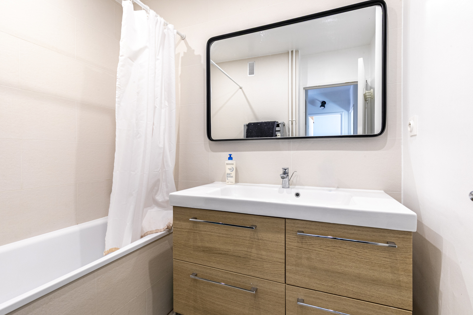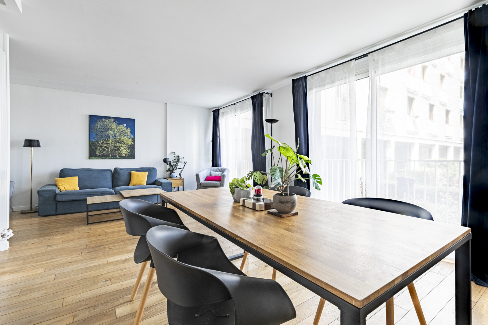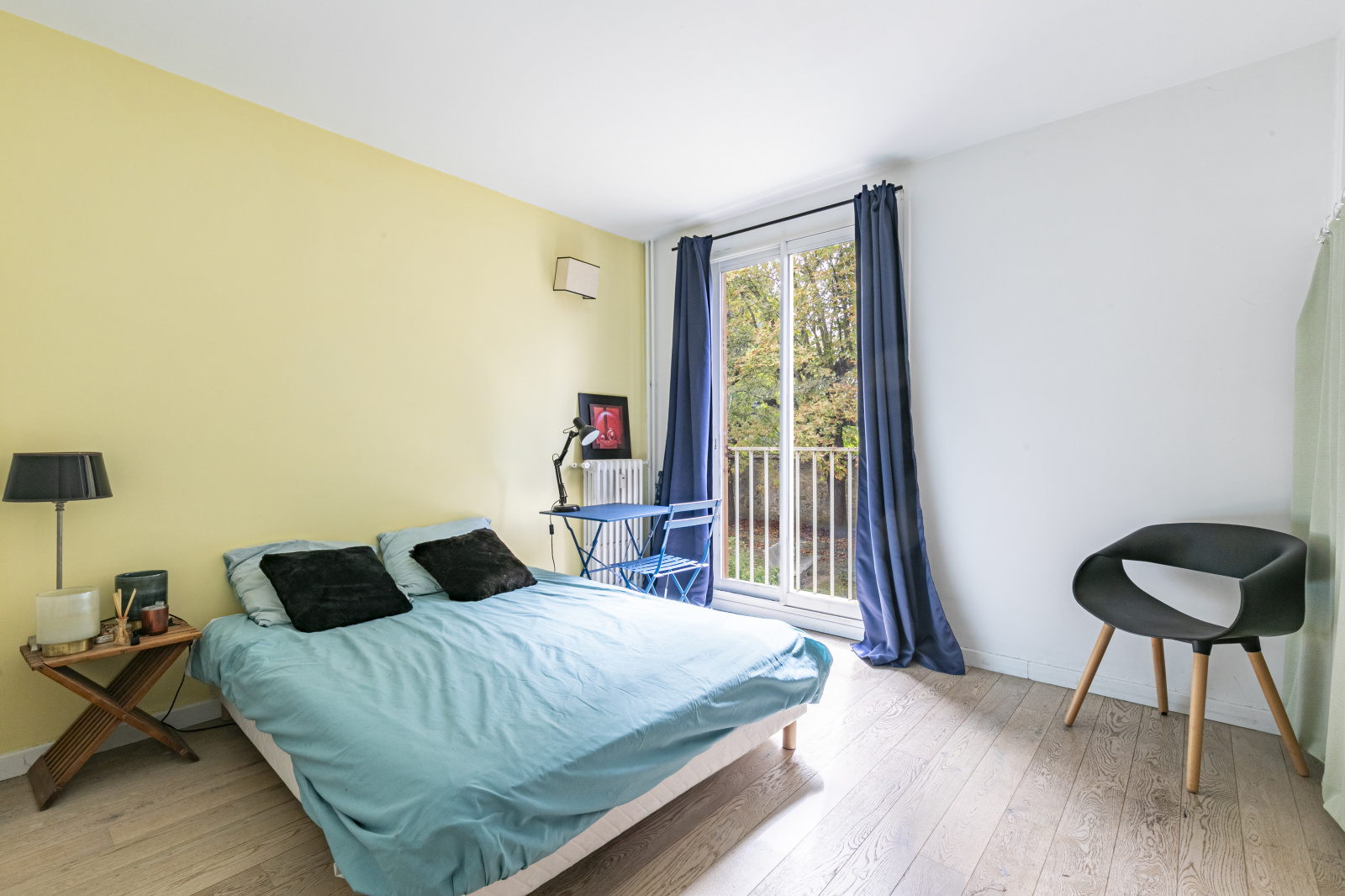 Une entrée, un agréable double séjour grâce à ses grandes baies vitrées, une cuisine ouverte, aménagée et équipée ainsi qu’un espace bureau. Un dégagement avec rangement mène vers le coin nuit composé de deux belles chambres avec placards donnant sur le jardin de la copropriété, au calme absolu, une salle de bains et des WC séparés.